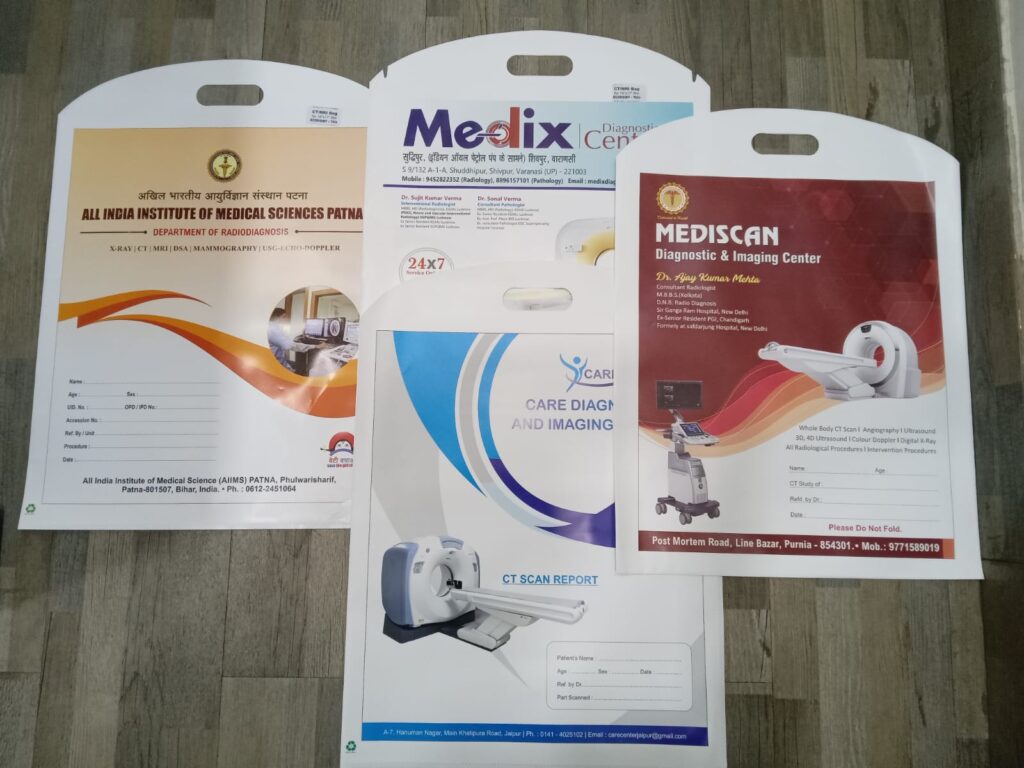 A CT scan plastic envelope is used to safely store CT scan films, reports, and patient documents. Made from strong, waterproof material, it protects records from damage, ensures easy handling, and helps hospitals and diagnostic centers maintain organized and confidential medical records.
